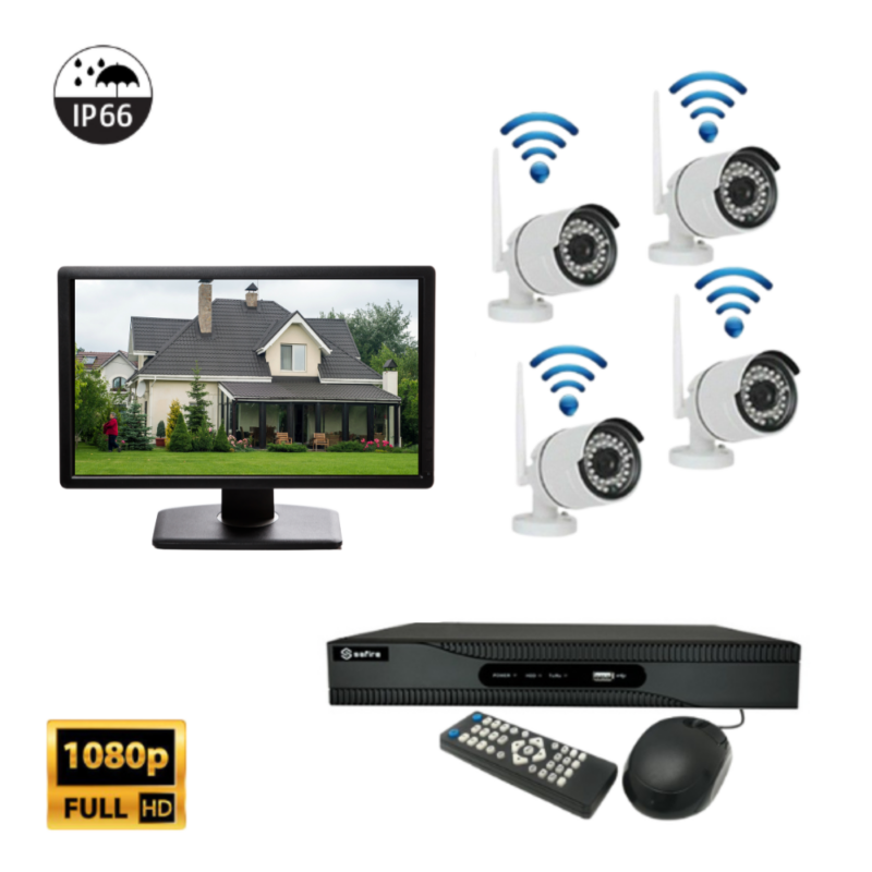 Kit Videosorveglianza 4 Canali Con Monitor HD Infrarossi + NVR