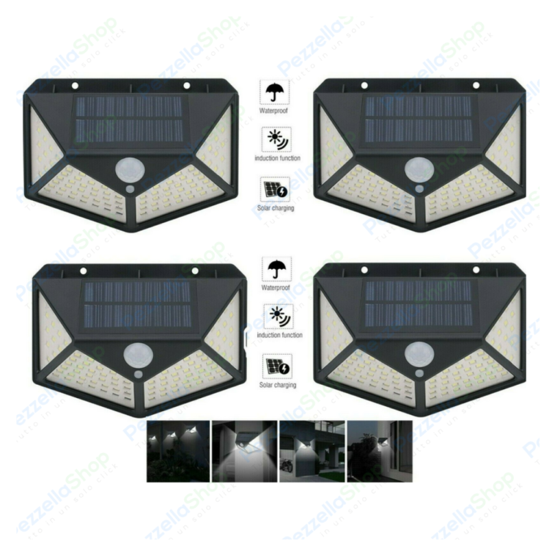 4 pz Lampade Solari 300 Led Con Sensore Movimento Illumina 270°