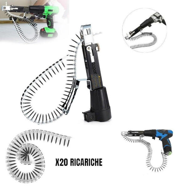 Adattatore Conversione da Trapano a Cacciavite per Cartongesso, Cintura a Catena con 20 Ricariche per 1000 Viti