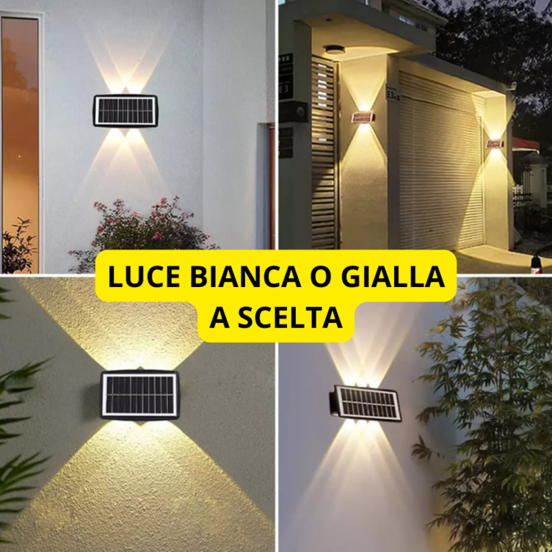 Appliques Luce Bidirezionale 10 LED a Ricarica Solare, Luce Fredda o Calda per Parete Muro Giardino Esterni