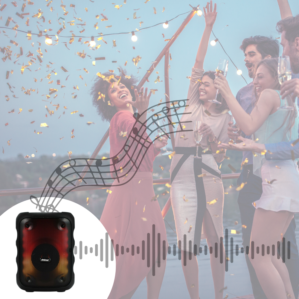 Goditi la tua musica ovunque con questa cassa speaker portatile 5W: compatta, potente e versatile. Dotata di connettività Bluetooth, radio FM e porte USB/SD/AUX, è perfetta per casa, campeggio, feste o in viaggio.