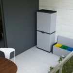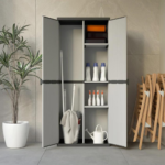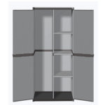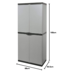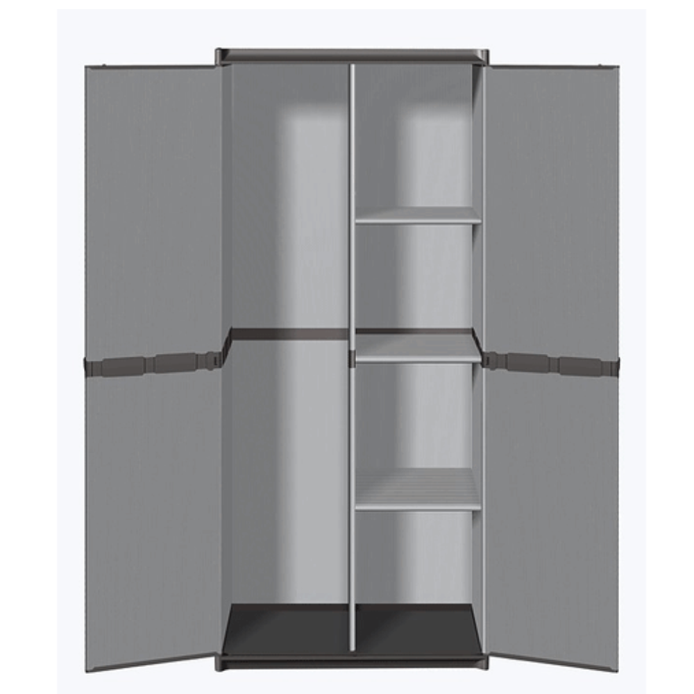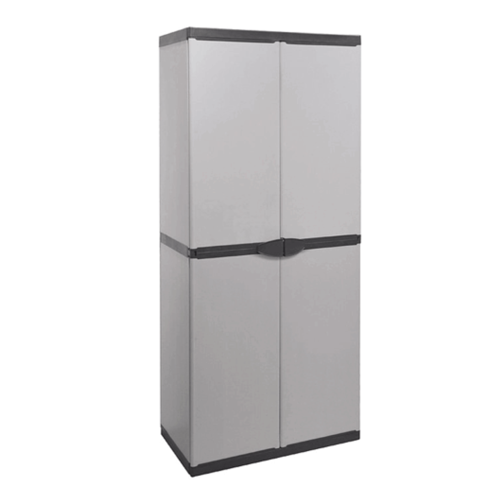 Armadio verticale con 2 ante e ripiani interni, perfetto per organizzare attrezzi, scope e accessori sia all’interno che all’esterno. Realizzato in resina resistente alle intemperie, è ideale per giardini, terrazzi, lavanderie e garage.