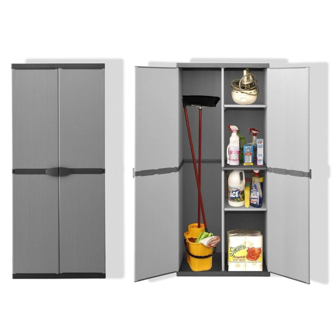 Armadio 2 Ante Porta Scope con Ripiani | Mobiletto in Resina per Esterni e Interni