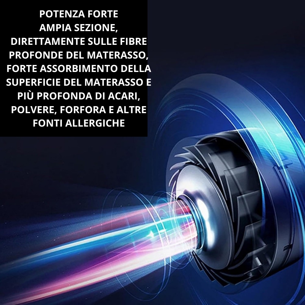 Materassi, divani e tappeti trattengono polvere, acari e allergeni invisibili. Grazie al filtro HEPA e alla potente aspirazione, questo aspirapolvere li elimina in profondità, aiutando anche a migliorare la qualità dell’aria e la salute di chi soffre di allergie.