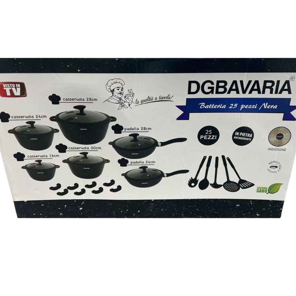Batteria Pentole e Padelle 25 Pezzi Antiaderente con Pietra | Induzione e Gas | dgbavaria Professionale