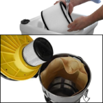 Ideale per le pulizie di mezza stagiona, di cantine o garage e di molto altro ancora. Bidone dotato di presa per Elettroutensile per collegare ed utilizzare l’elettroutensile in tutta libertà comandando l’accensione dell’aspiratore con il pulsante dell’elettroutensile. Dotato di ganci di chiusura professionali in metallo solidi e resistenti che assicurano una chiusura aderente. Il carrello con 4 ruote facilita gli spostamenti e conferisce stabilità.