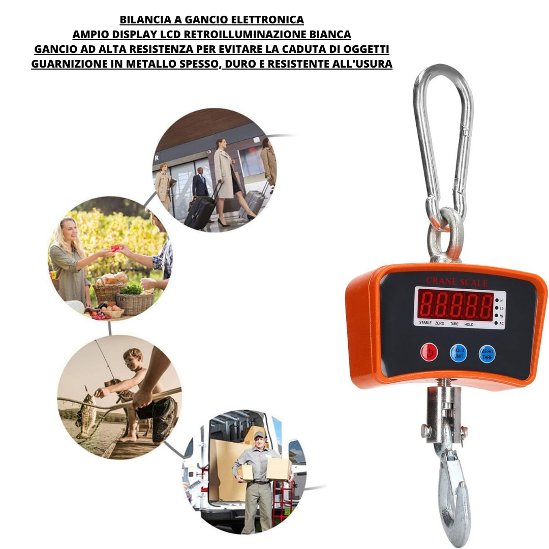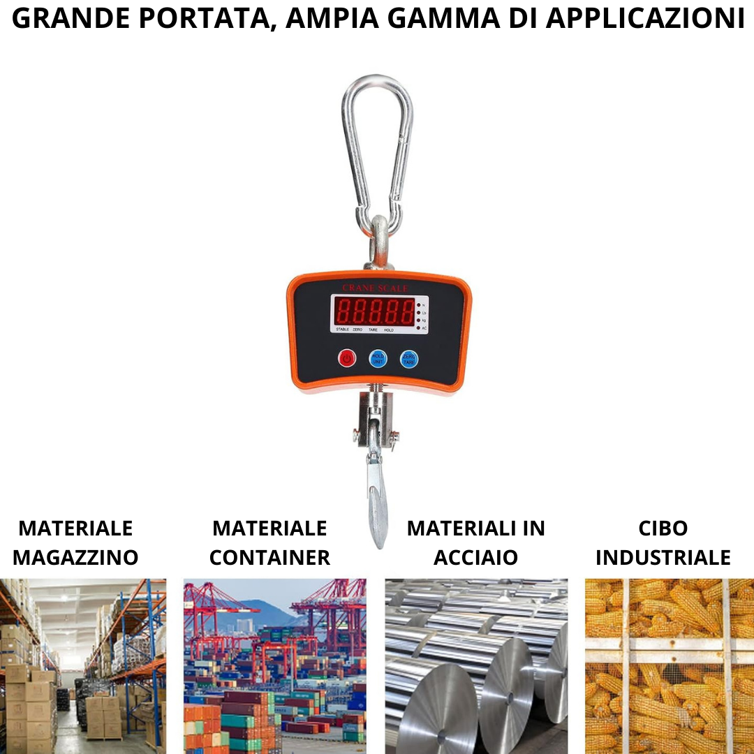 Bilancia Industriale 1000 Kg Elettronica | Display LED e Gancio per Gru