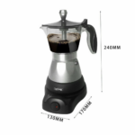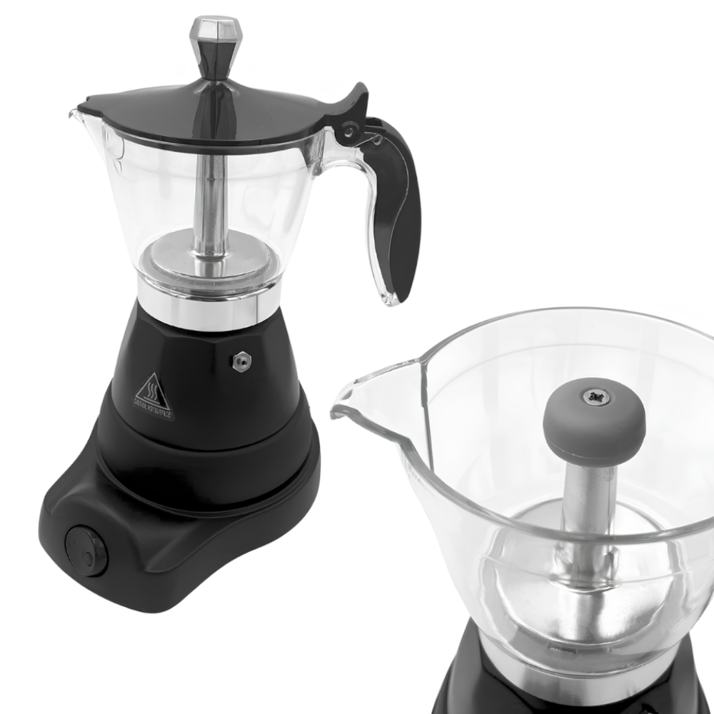 Caffettiera elettrica da 3 tazze per caffè macinato con autospegnimento e mantenimento caldo. Compatta, sicura e perfetta per preparare il caffè in pochi minuti, senza fornello.
