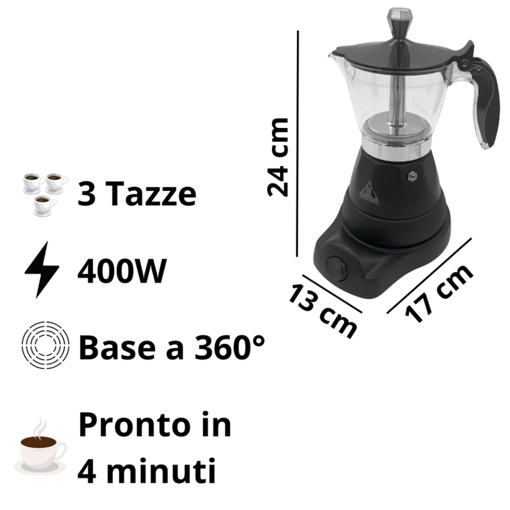 Caffettiera Elettrica 3 Tazze | Moka Automatica 400W con Autospegnimento e Mantenimento Caldo