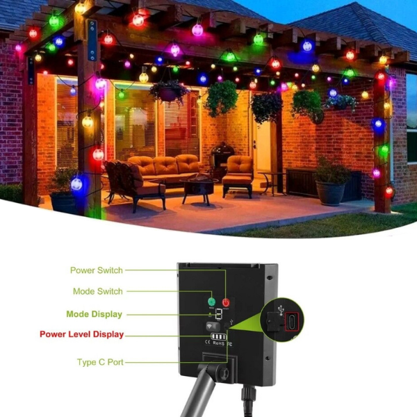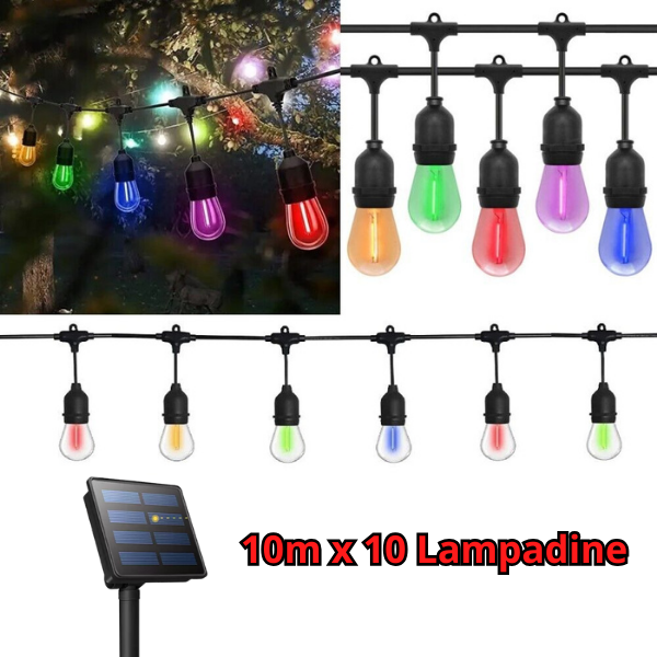 Catena Luminosa Colorata Ricarica Solare 10m 10 Lampadine con Pannello IP65 8 Modalità di Luci