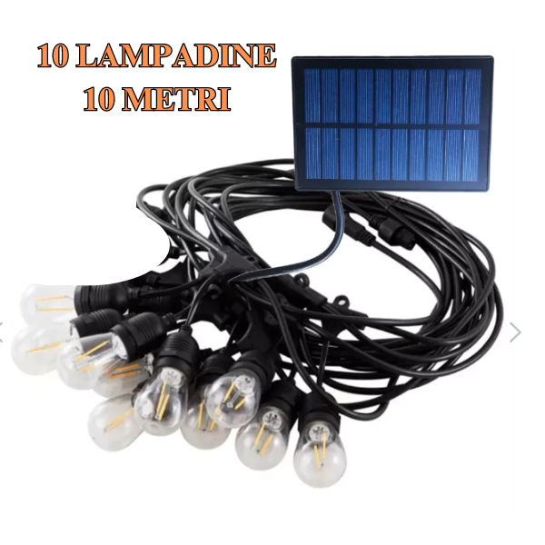 Catena Luminosa Solare 10m LED | 10 Lampadine, Luce Calda, IP65 e Telecomando