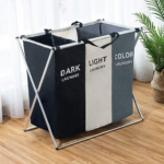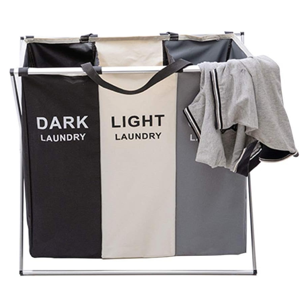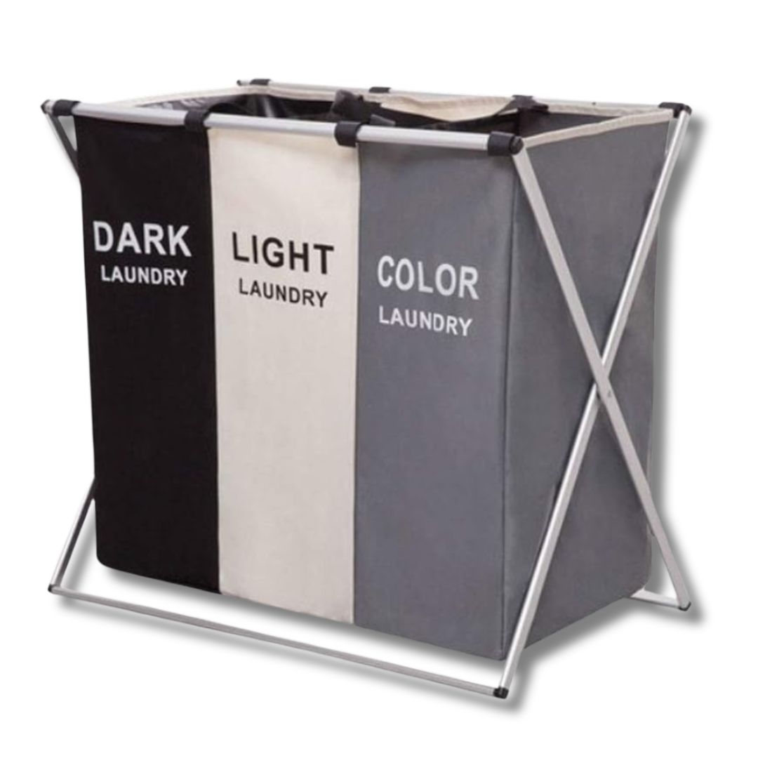 Cesto portabiancheria con 3 scomparti separati per dividere facilmente i panni chiari, scuri e colorati. Pratico, capiente e dotato di maniglie per un trasporto agevole. L’alleato perfetto per l’organizzazione del bucato.