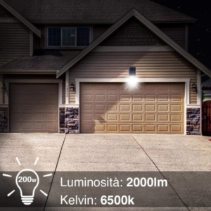 Illuminazione potente ed ecosostenibile per ogni spazio esterno. Il faro LED LaPaginaDegliAffari da 200W con pannello solare integrato assicura una luce bianca fredda 6500K ad alta intensità, perfetta per giardini, cortili, parcheggi, strade e aree industriali.
