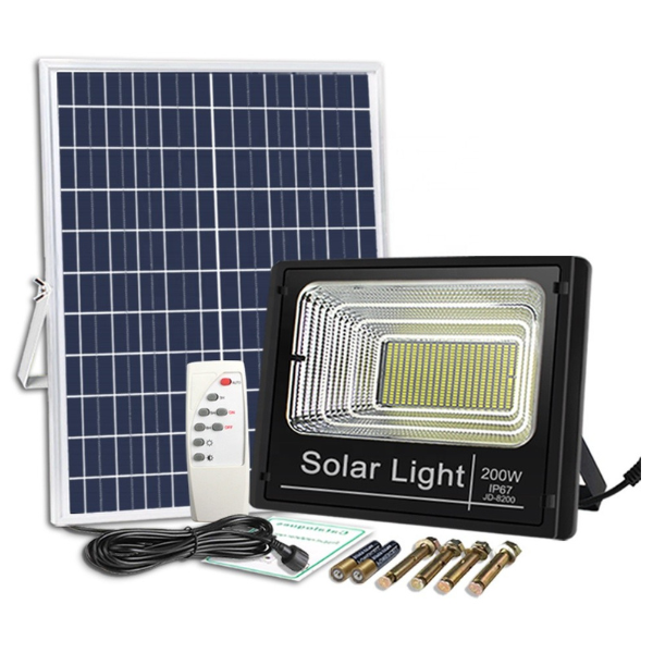 Faro LED 200W con Pannello Solare | Sensore Crepuscolare 6500K per Giardini ed Esterni