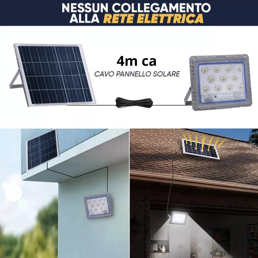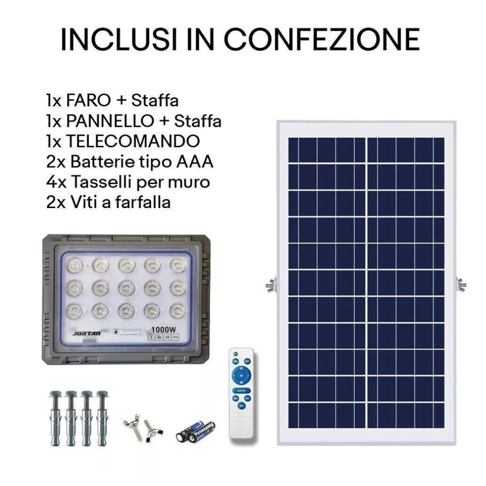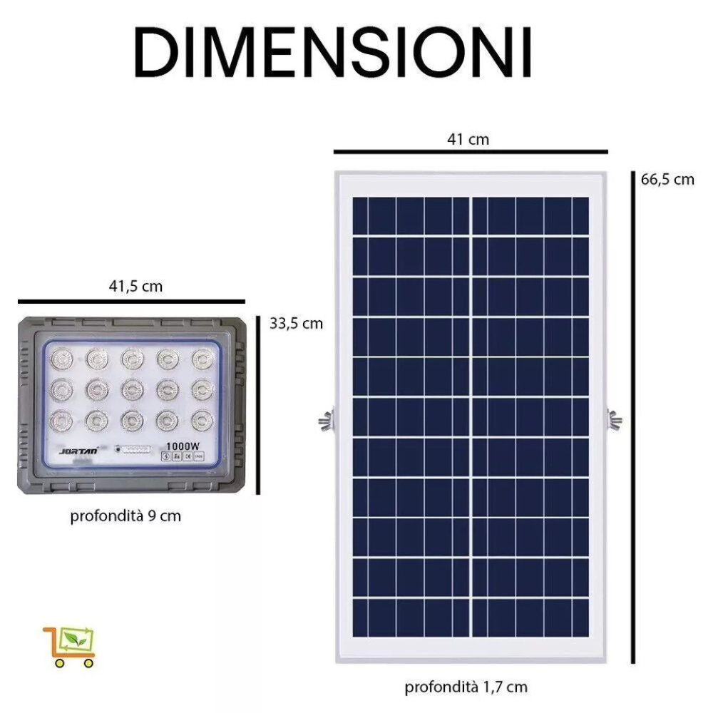 Faro LED Solare 1000W Slim con Pannello | Sensore Crepuscolare IP66 in Alluminio Pressofuso