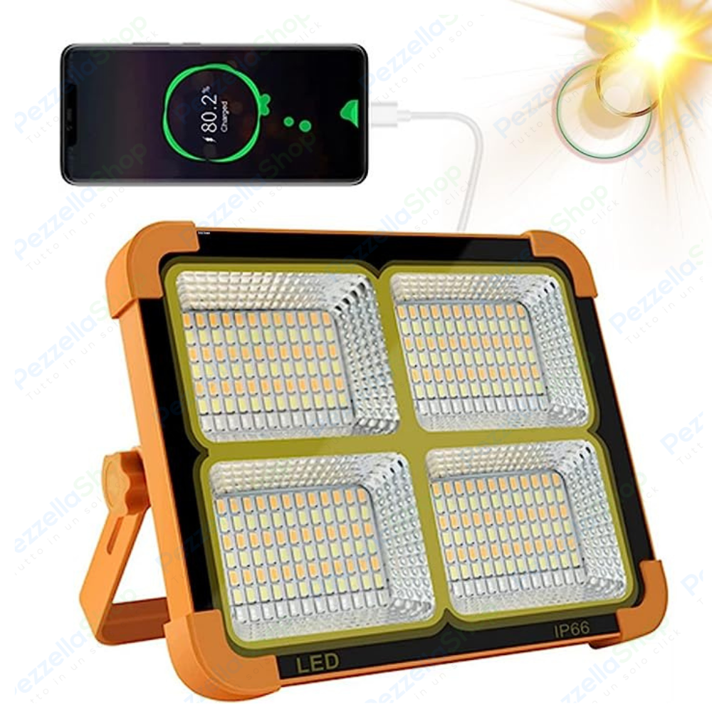 Faro Led Solare Ricaricabile Da Lavoro 300w Luce Fredda e Calda RGB Power bank