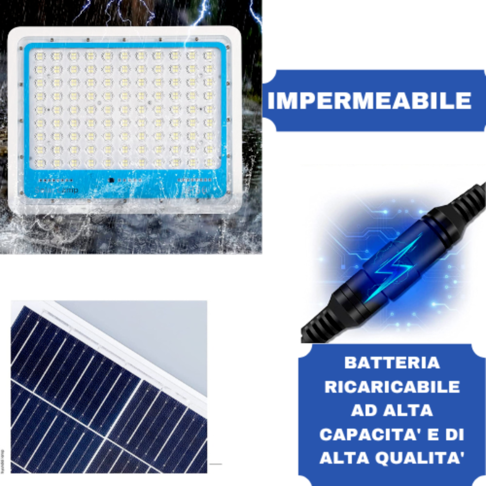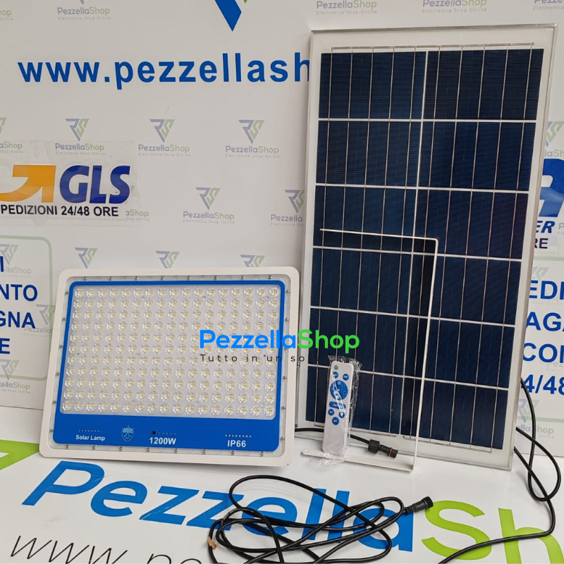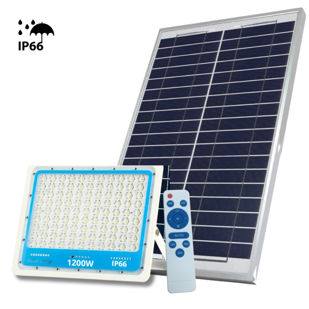 Faro Solare 1200W Slim con Sensore Crepuscolare e Telecomando – IP66 Impermeabile per Esterni
