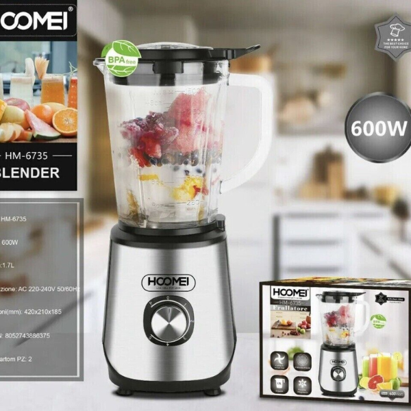 Frullatore Elettrico 600 Watt 1,7 Litri Tritaghiaccio Blender 5 Velocità Inox