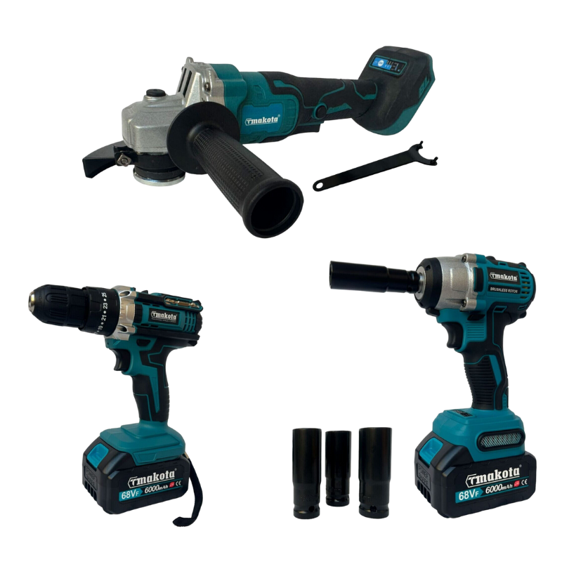 Kit 4 in 1 Trapano, Avvitatore ad Impulsi, Smerigliatrice Angolare, Torcia da Lavoro | Doppia Batteria 68V Kit 4 in 1 Trapano, Avvitatore ad Impulsi, Smerigliatrice Angolare, Torcia da Lavoro | Doppia Batteria 68V