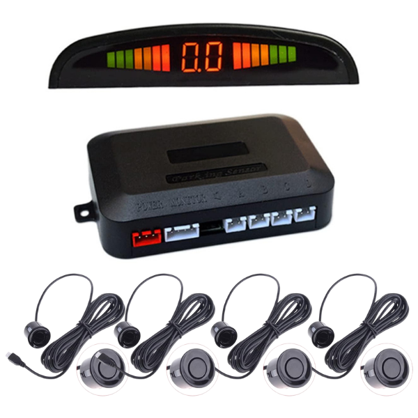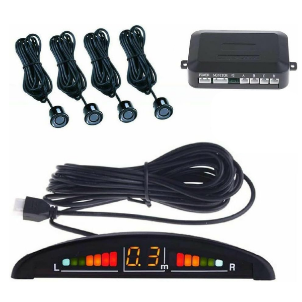 Kit 4 Sensori di Parcheggio per Automobile, Universali con Display Led Digitale e Cicalino Acustico, Colore Nero