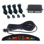 Kit 4 sensori di parcheggio universale per auto, dotato di display e led acustico, i sensori sono verniciabili con bomboletta per ritocchi, la lunghezza dei cavi sensori posteriori è di circa 200 cm, è possibile aumentare la lunghezza utilizzando del normale cavo schermato (1+schermo). Questo prodotto viene fornito con istruzioni in inglese, l’estetica ed il colore variano in base alla disponibilità di magazzino, per il funzionamento quando viene inserita la retromarcia vengono rilevati gli ostacoli posteriori, la centralina viene alimentata e il display si accende, tutti gli ostacoli vengono rilevati e indicati sul display. L’alimentazione è 10/15 V, il consumo massimo è di 2W, la temperatura di esercizio va da -20°C a +70°C, la frequenza del tono parte da 1 hz quando l’ostacolo è tra i 200 e 110 cm, diventa 3hz se l’ostacolo è tra i 100 e i 60 cm ed infine passa a 7 hz quando l’ostacolo è a meno di 50 cm, la dimensione della centralina è circa 9 x 7 x 2 cm e il diametro dei sensori è circa 2,2 cm. All’interno della confezione oltre ai 4 sensori verniciabili con cavo, al display led con acustica incorporata e alla centralina troverete anche una punta a tazza da trapano per forare alla misura esatta.