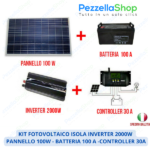 Kit Fotovoltaico Isola Inverter 2000W Pannello Solare 100W Batterie 100AH regolatore corrente 30A Kit Fotovoltaico Isola Inverter 2000W Pannello Solare 100W Batterie 100AH regolatore corrente 30A