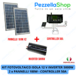 Kit Fotovoltaico Isola Inverter 5000W 2 Pannelli Solari 100W regolatore corrente 50A