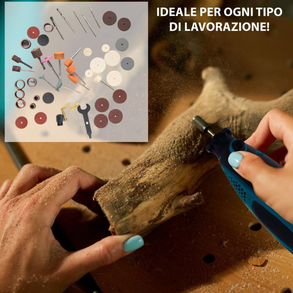 Multifunzione: smerigliatrice, fresatrice, incisore, lucidatrice in un solo utensile