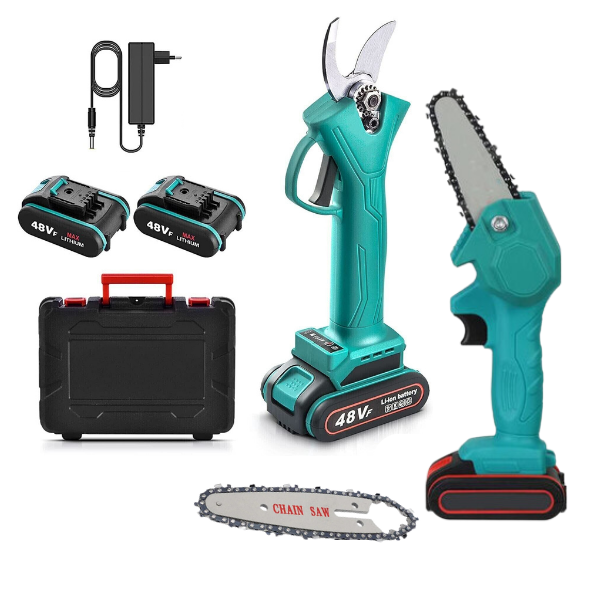 Kit 2 in 1 Cesoia + Motosega con Doppia Batteria 48V – Lama 4 cm + 6”/8” con Valigetta Inclusa