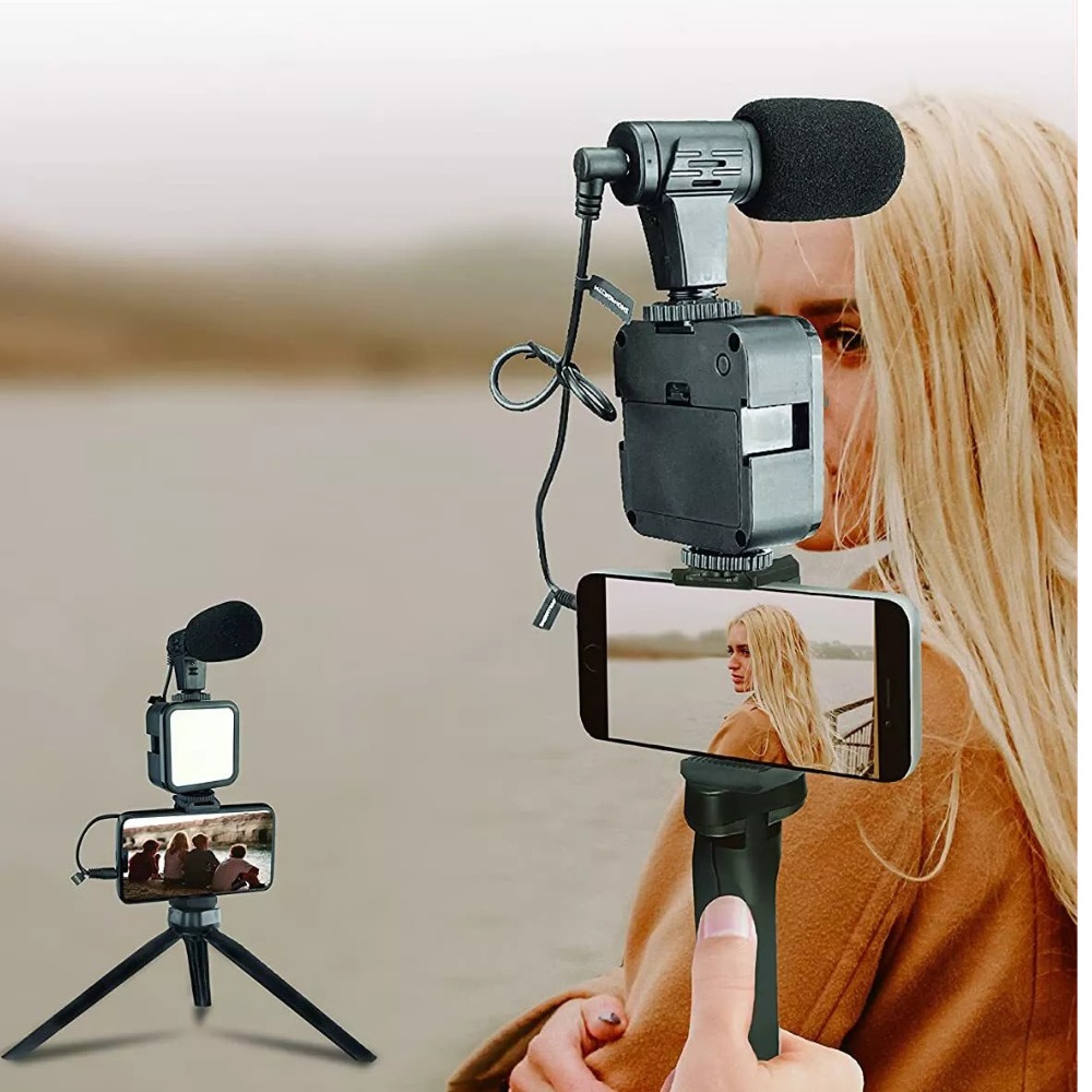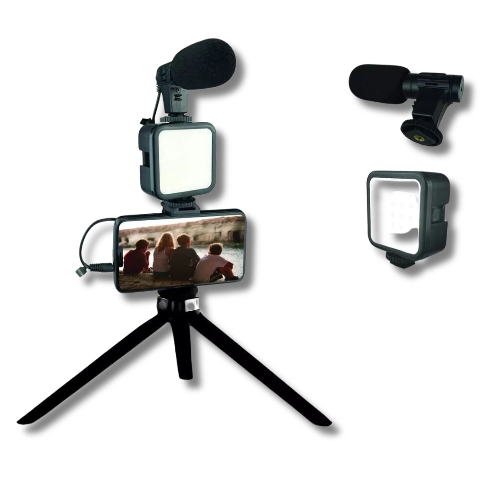 Kit Videomaking per Smartphone con Treppiede | Luce LED e Microfono per i tuoi Video Professionali