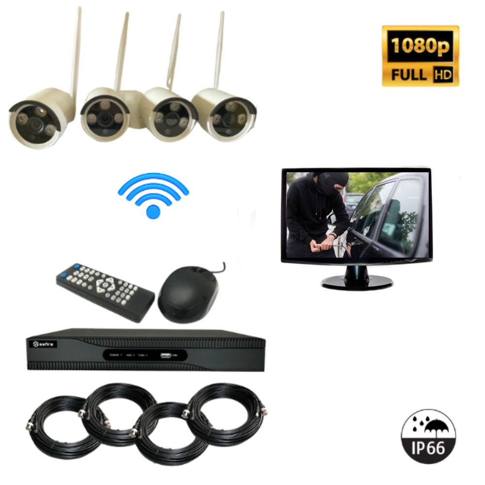 SCHEDA KIT VIDEOSORVEGLIANZA CON MONITOR 7 ” WIRELESS FULL HD 4 TELECAMERE WIFI REMOTO IP 5G NVR LAN