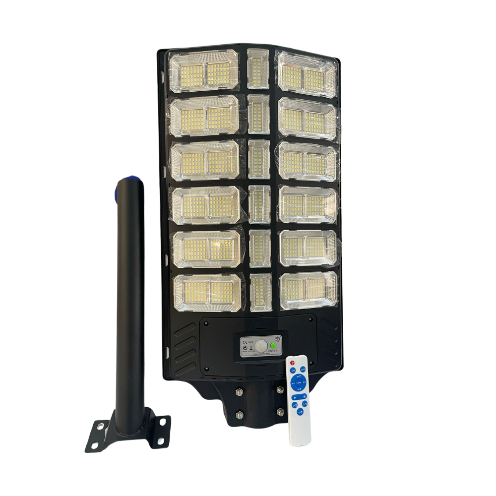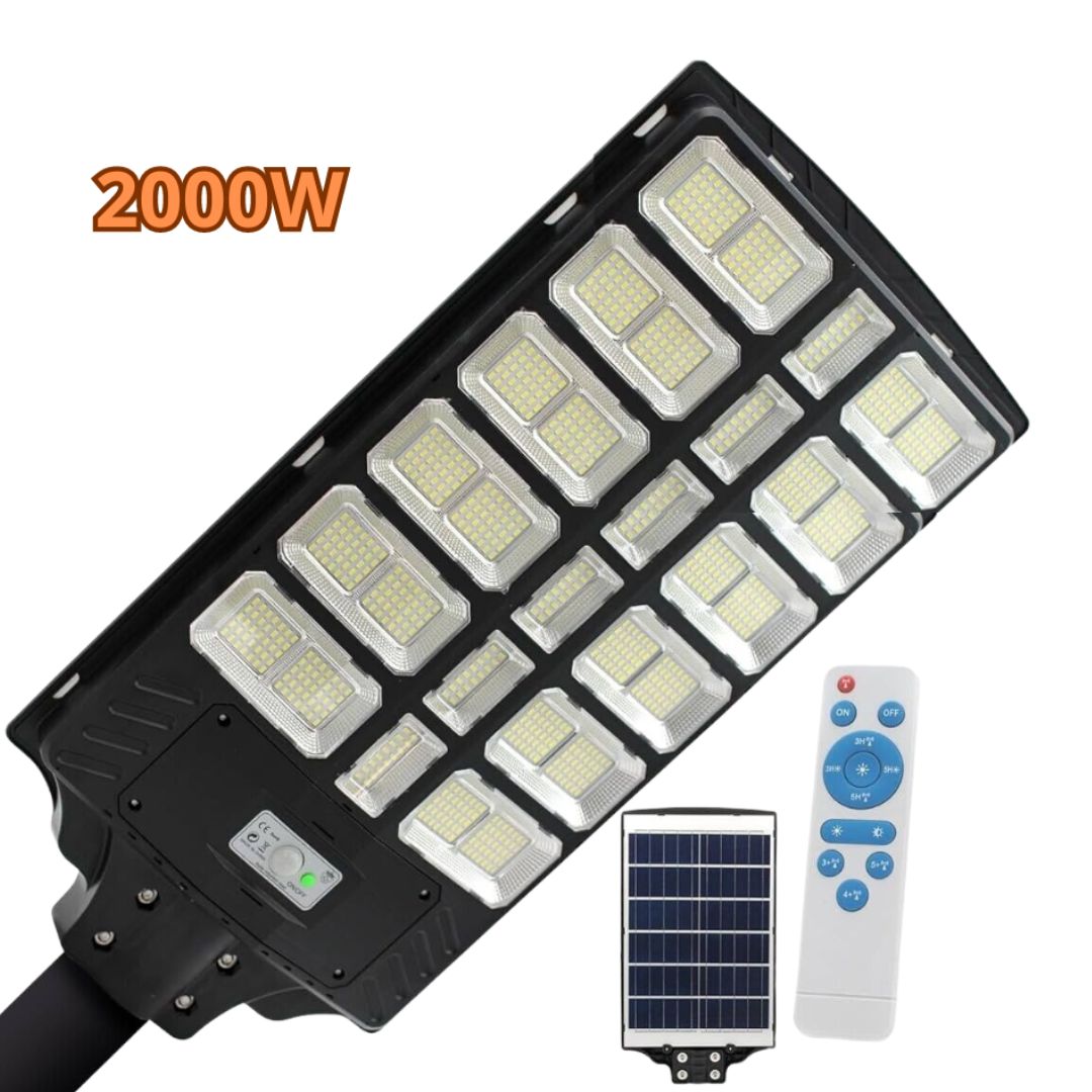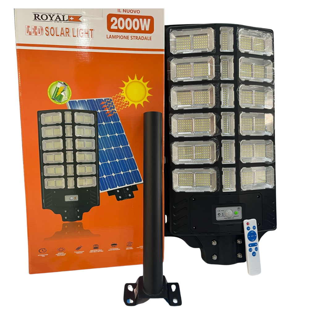 Lampione Solare 2000W con Staffa Inclusa | Sensore Crepuscolare IP67, Luce Bianca