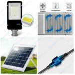 Illumina esterni, viali, parcheggi e cortili con il lampione solare LaPaginaDegliAffari da 400W, progettato per garantire massima efficienza luminosa e risparmio energetico. Grazie al pannello fotovoltaico separato, al sensore crepuscolare, alla protezione IP66 e al telecomando wireless, è perfetto per ogni applicazione outdoor senza necessità di collegamento alla rete elettrica.