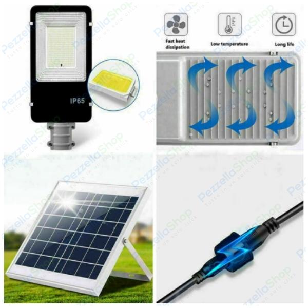 Lampione Solare 400W LED Crepuscolare con Pannello Separato | IP66, Telecomando, Luce Bianca Fredda