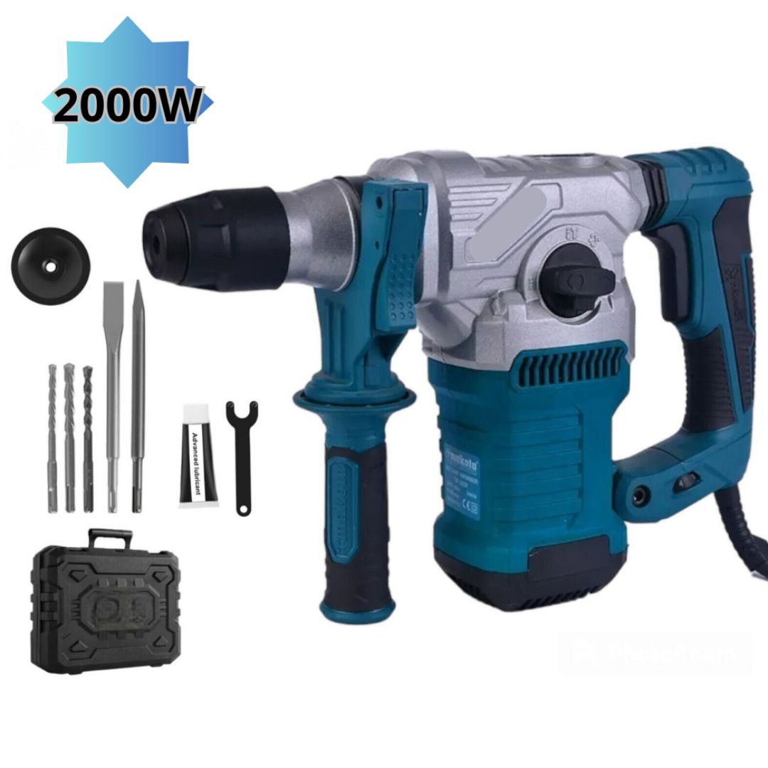 Martello Demolitore e Perforatore Pneumatico 2000W | Scalpellatore 32mm con 5 Punte SDS Plus