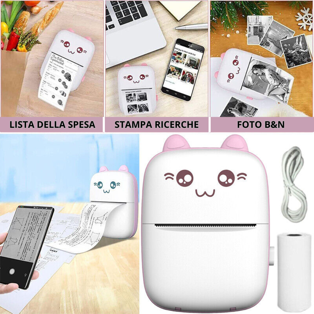 Mini Stampante Termica Wireless Portatile Bluetooth, Stampa Senza Inchiostro, Bianco e Nero