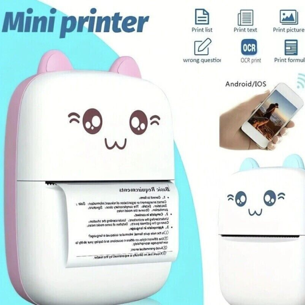 Mini Stampante Termica Wireless Portatile Bluetooth, Stampa Senza Inchiostro, Bianco e Nero Mini Stampante Termica Wireless Portatile Bluetooth, Stampa Senza Inchiostro, Bianco e Nero