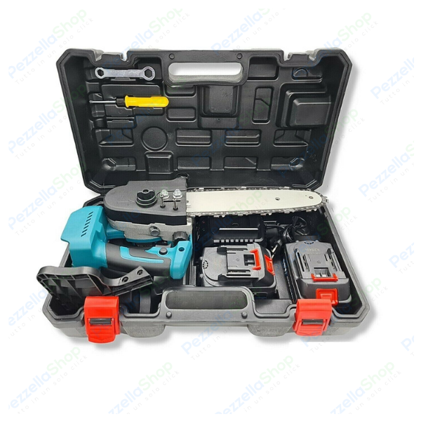 Buona motosega con 2 batterie, c’è anche la valigetta comoda per il trasporto