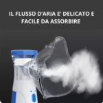 Dotato di alimentazione USB, funzionamento silenzioso e 3 mascherine intercambiabili (adulto, bambino e beccuccio), è compatibile con la maggior parte dei medicinali per aerosol. Ideale per chi soffre di asma, bronchite, raffreddore, allergie e problemi respiratori.