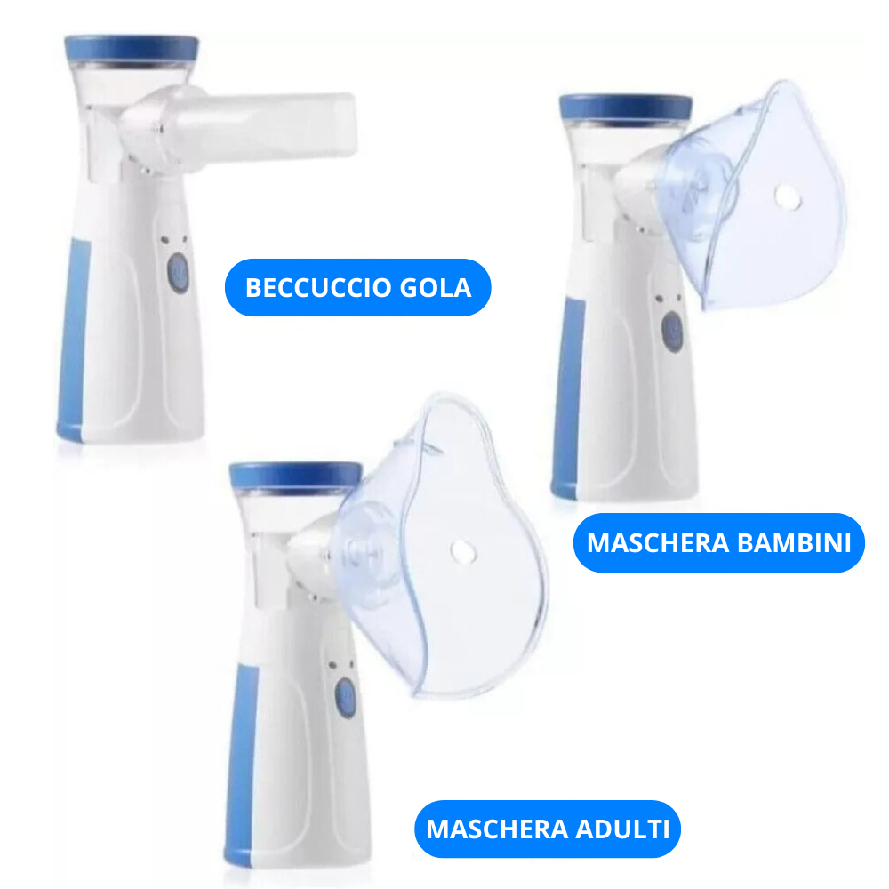 Nebulizzatore Aerosol Portatile Senza Fili – Inalatore Ricaricabile USB con 3 Mascherine per Bambini e Adulti