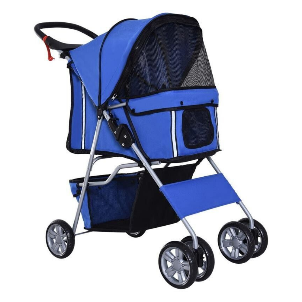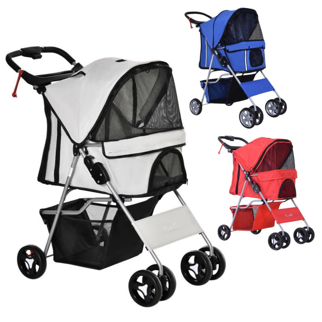 Passeggino Pieghevole per Animali con Portaoggetti | 4 Ruote, Tessuto Impermeabile e Struttura in Acciaio
