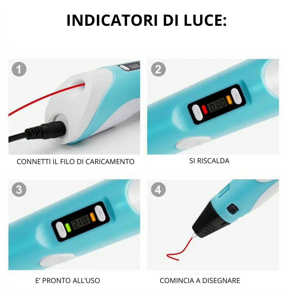 Libera la creatività di grandi e piccoli con la Penna 3D LaPaginaDegliAffari: facile da usare, precisa e ideale per creare oggetti, disegni e decorazioni tridimensionali direttamente a mano. Perfetta per appassionati di tecnologia, arte e fai da te.
