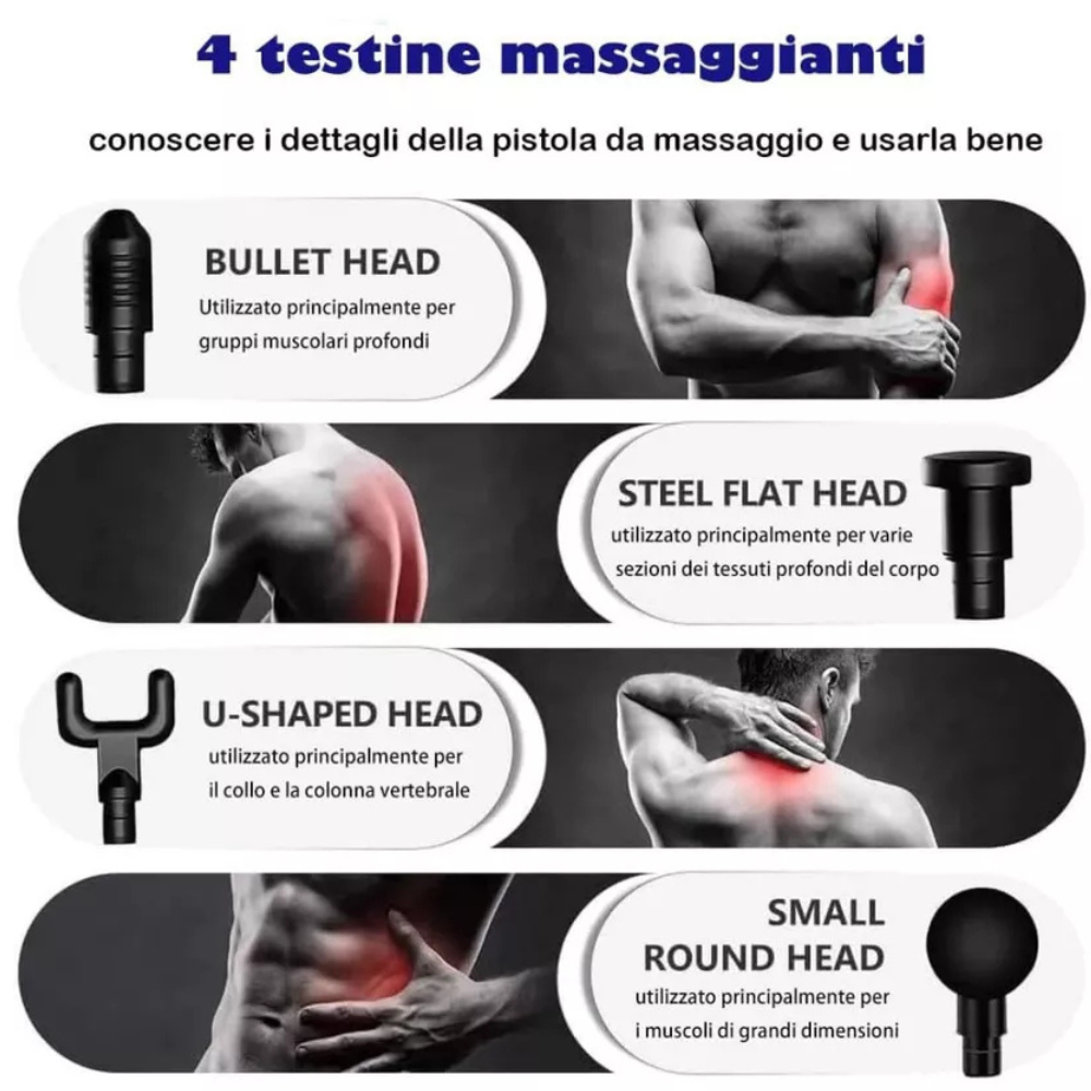 Rilassa i muscoli e rigenera il corpo ovunque tu sia! Ordina subito la pistola massaggiante LaPaginaDegliAffari: spedizione gratuita e pagamento alla consegna. Il tuo alleato ideale per benessere quotidiano e recupero sportivo!