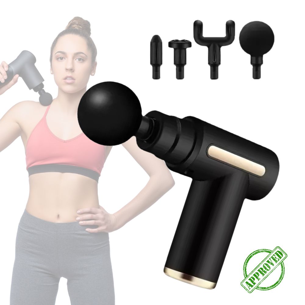 Pistola Massaggiante per Muscoli con 4 Testine | Massaggio Rilassante per Schiena, Collo, Arti | Ricaricabile