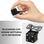 retrocamera posteriore compatta e impermeabile, perfetta per aumentare la sicurezza durante le manovre in auto. Facile da installare e compatibile con la maggior parte dei monitor e schermi da parcheggio, offre visione notturna a colori e ampio angolo visivo.