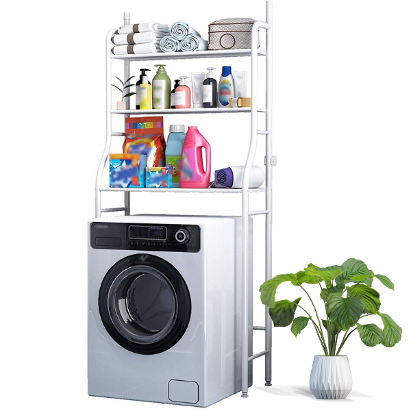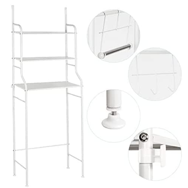 Scaffale Salvaspazio per Lavatrice da Bagno, Organizer con 3 Mensole Mobiletto Portaoggetti, Lavanderia