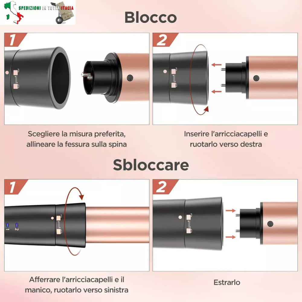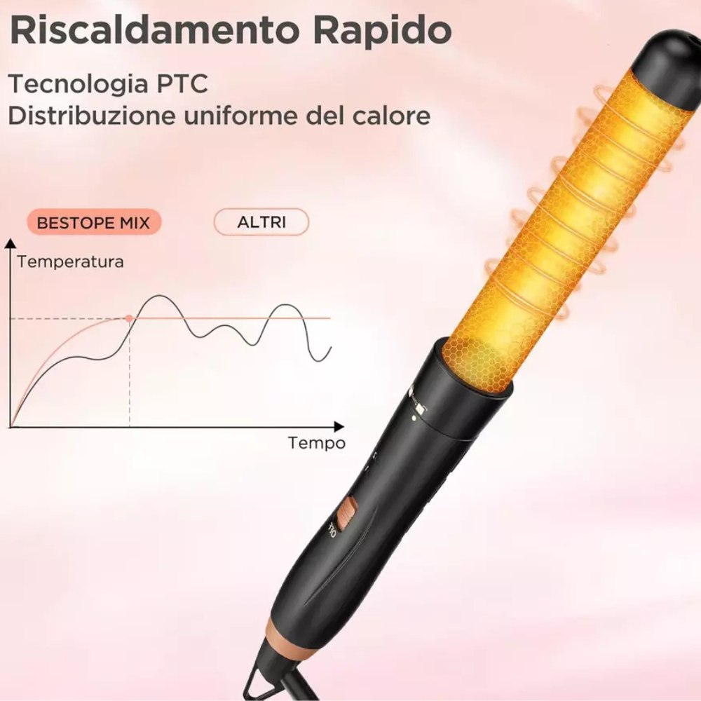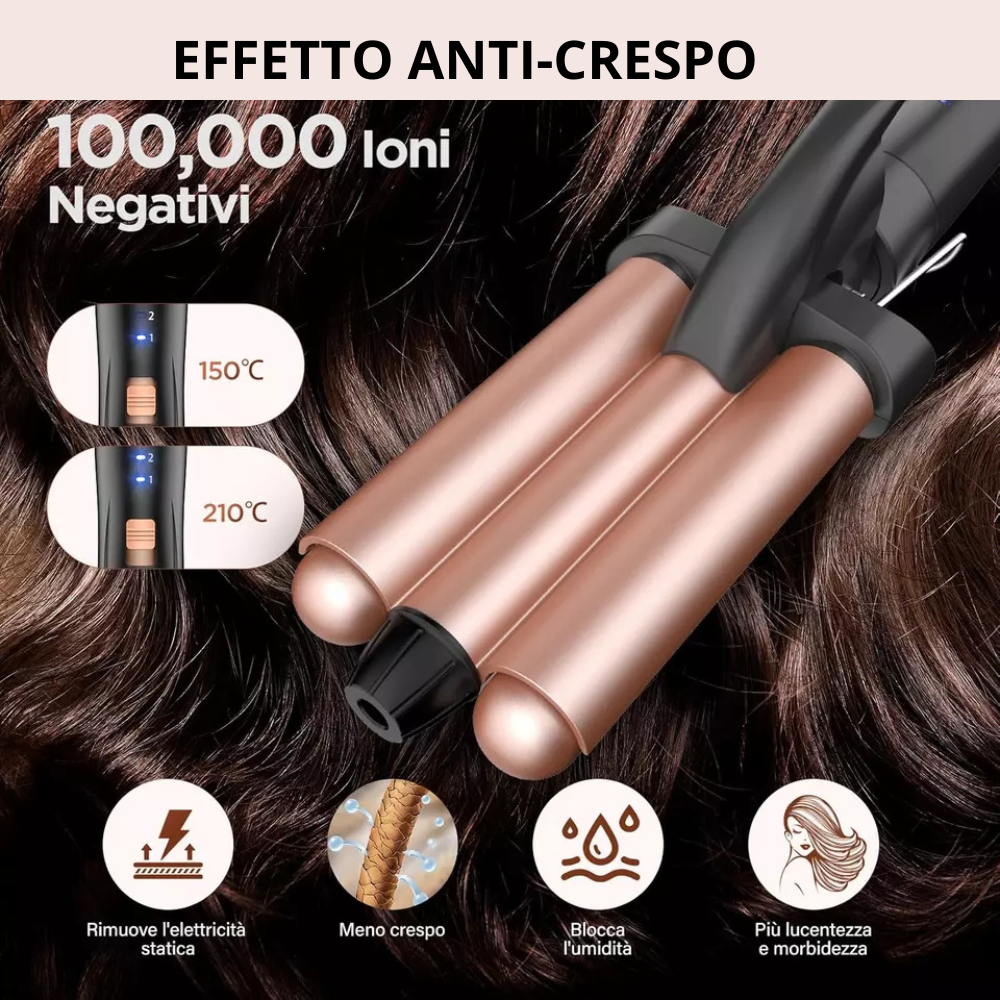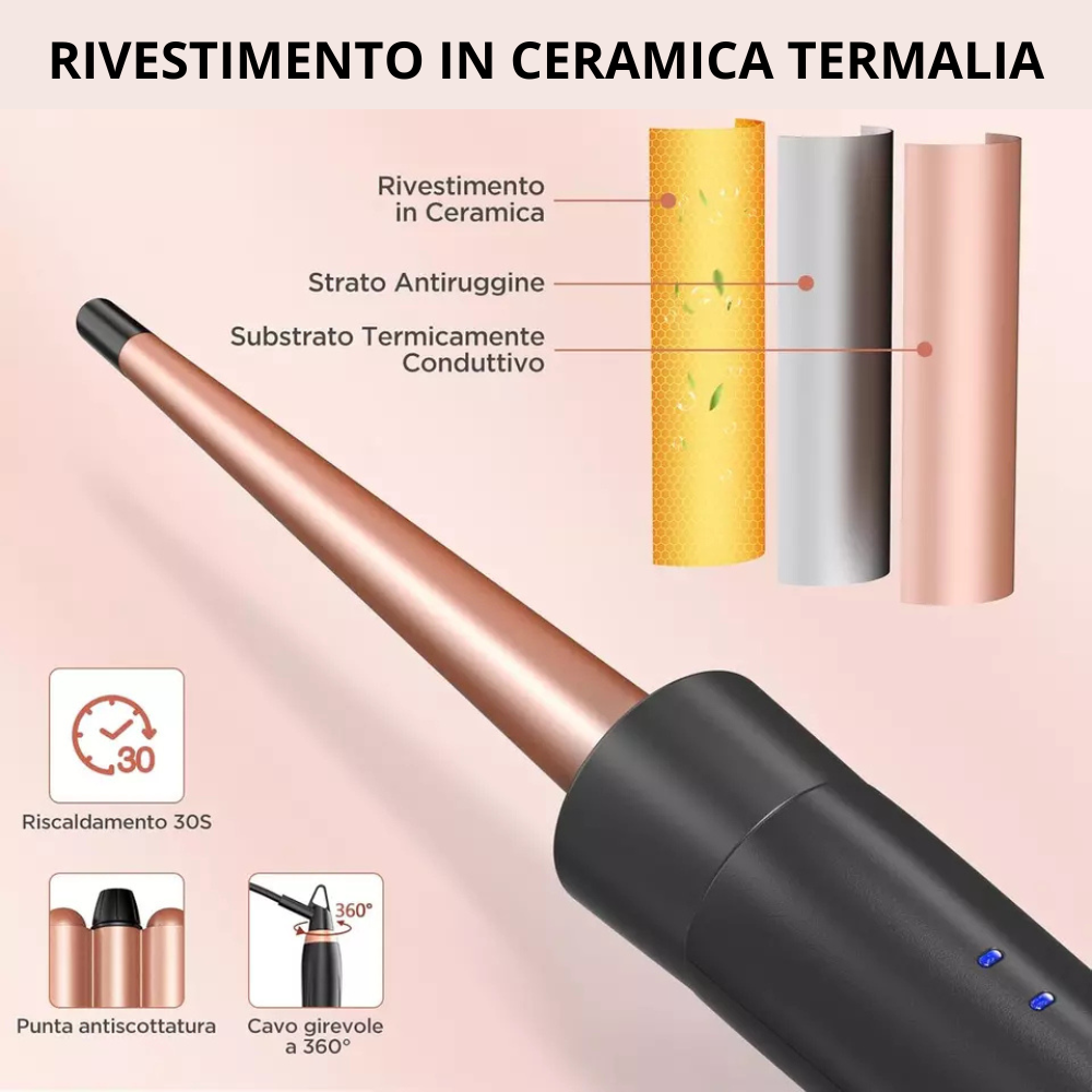 3 coni arricciacapelli: 32 mm, 25 mm, 9/18 mm per onde strette o morbide
