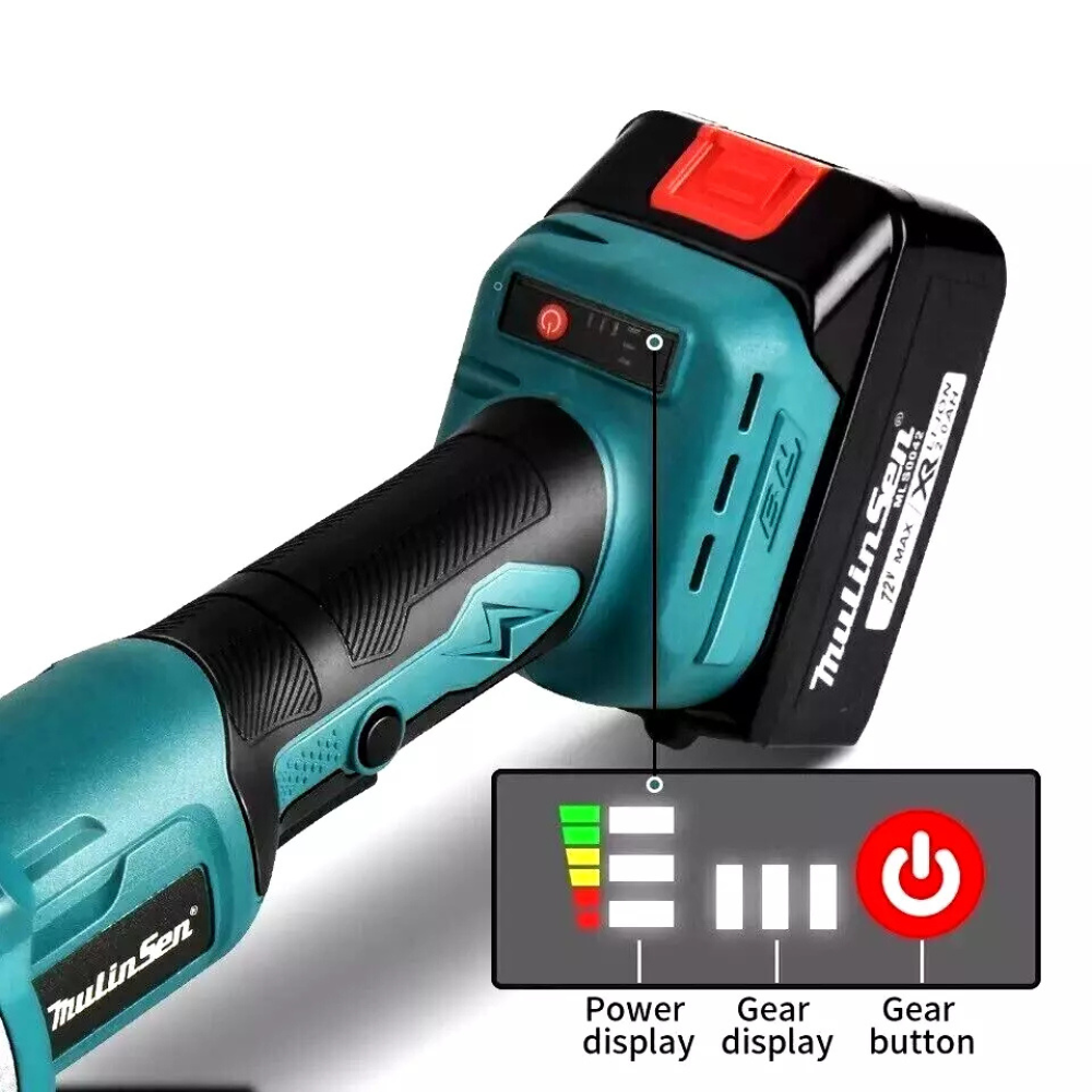 Smerigliatrice Angolare a Batteria 68V | Brushless, 115 mm, 8000 giri/min | Con Batteria, Caricatore e Accessori