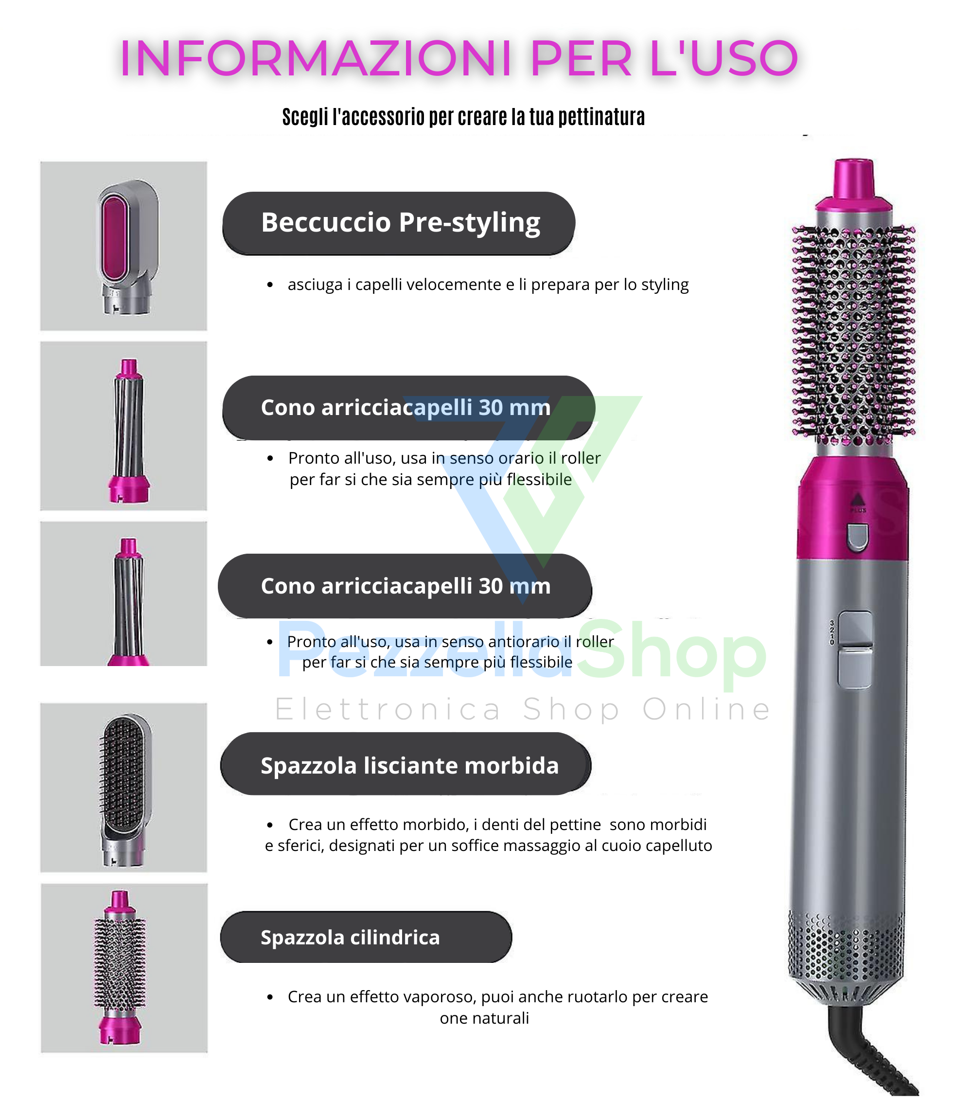 5x Accessori intercambiabili per styling (lisci, ricci, volume, ecc.)