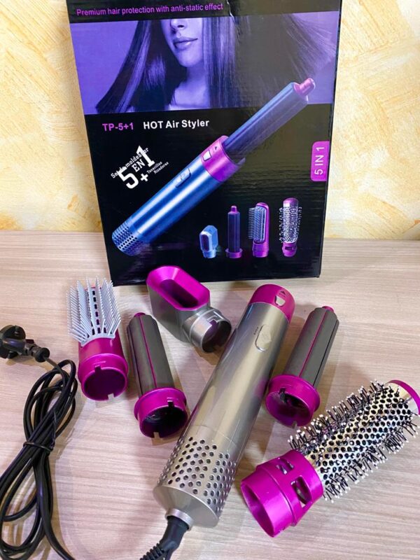 Styler multifunzione con 5 accessori intercambiabili per ottenere capelli lisci, mossi o ricci con un solo strumento. Compatta, potente e facile da usare, è l’alleata perfetta per uno styling completo a casa.